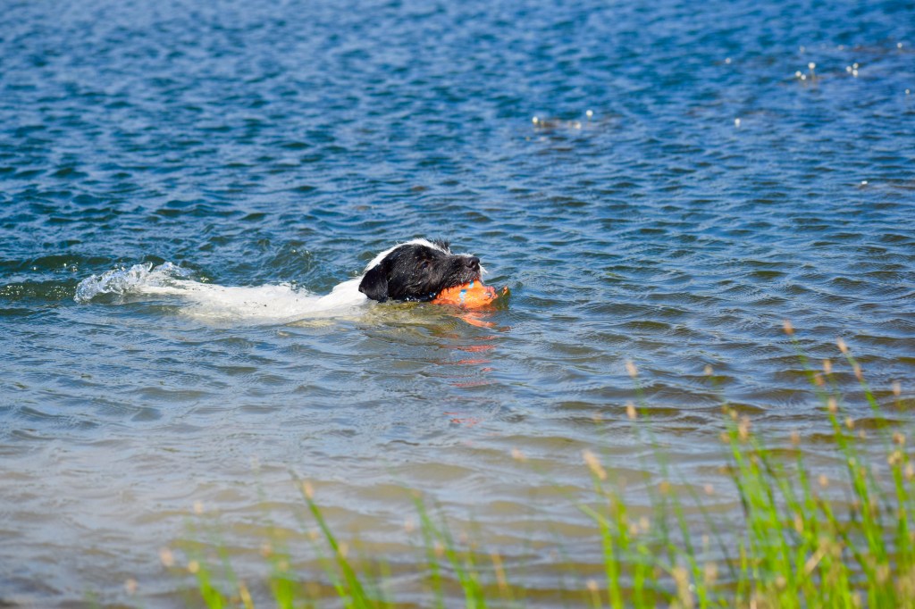 Scarlet is my wild child. This girl lives to retrieve, she has intense ball drive and thrives to retrieve on land or in the water. She is fast, focused and intense. Everything in her life is wonderful, she has a very happy disposition. She has the heart of a working dog and no earthdog den is safe with her in it.